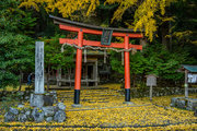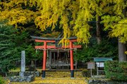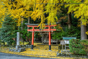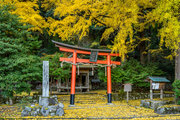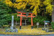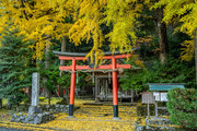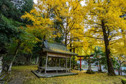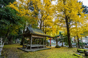 神社は、国道162号線から北区大森方面に行く道の分岐点の近くにあり、境内に4本のイチョウの大木があることから、イチョウの紅葉の名所となっています。