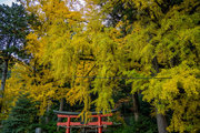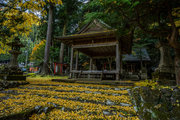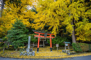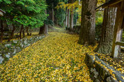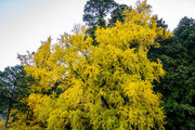 早朝の小雨の中、イチョウは散り加減でしたが、黄色く染まった境内が雨に滲んでいい風情でした。