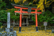 社名は、岩戸社と落葉社の二社の本殿が並び建ち、拝殿と鳥居が一つずつしかないので、岩戸落葉神社と呼ばれています。
