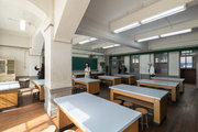 昭和初期に流行したスパニッシュ様式による校舎建築。美しいアーチがみどころの「元淳風小学校」を特別公開。理科室、音楽室、放送室……。当時の小学校の雰囲気がそのまま残る校舎内を、順路に沿って自由に見て回れます。廊下の柱の上部に曲線的なあしらいが施されるなど、現在の小学校建築とはひとあじ違う豪華な雰囲気を体感してください。
