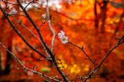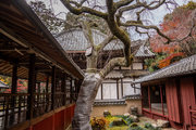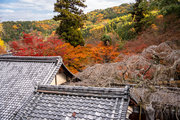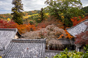 本堂を取り巻く桜—なりひら桜—高所から見る本堂である