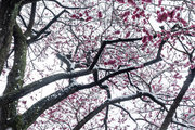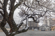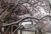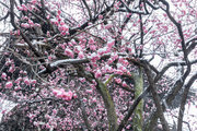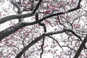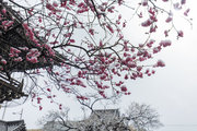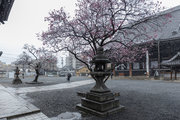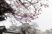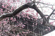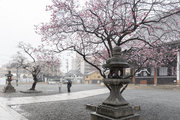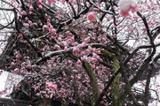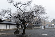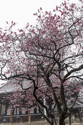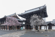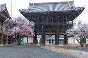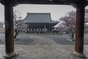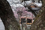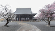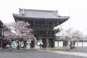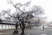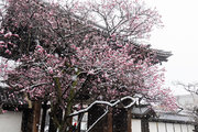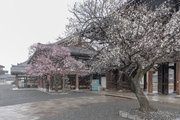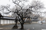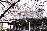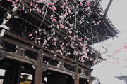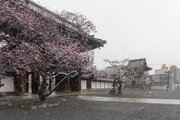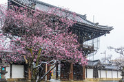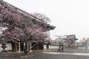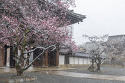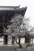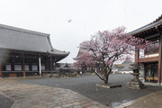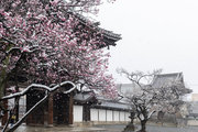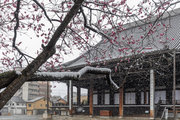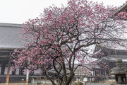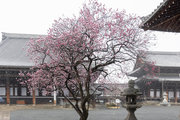 この冬一番の大寒波到来の日、吹雪の中、バスの窓から三門前の紅白梅が見えた。その風情がよかったので、京都駅から戻って撮影した。もっと吹雪いて、真っ白の中に紅梅のピンクだけがかすかに見えるような写真が撮りたかったが、そううまくはいかない。ちなみにここは西本願寺の南隣で、ずっと、お西さんの一部だと思い込んでいた。