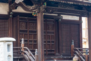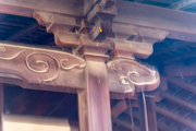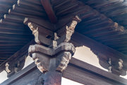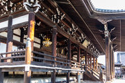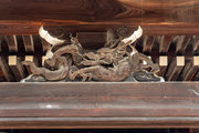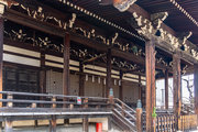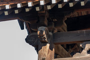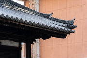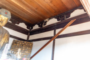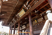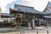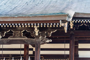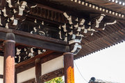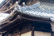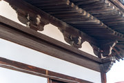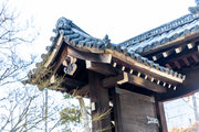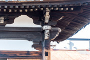 表門は寺ノ内通りに開く高麗門で、頭貫端の大振りの木鼻彫刻が特徴的である。