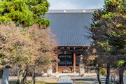 鎌倉時代、日像上人が京都初の日蓮宗道場として創建した大本山。伽藍の中心には、天井に信徒の家紋をあしらった総欅造の荘厳な本堂が建つ。琳派を代表する尾形光琳の屏風絵を元に作られたという「光琳曲水の庭」、客殿前の「龍華飛翔(りゅうげひしょう)(四海唱導(しかいしょうどう))の庭」、孟宗竹の坪庭と、風情ある三つの庭が残る。今回は、光琳筆「寿老松竹梅三幅対(じゅろうしょうちくばいさんぷくつい)」、江戸琳派の祖・酒井抱一筆「観世音菩薩像」など琳派の絵画のほか、狩野山楽筆「楼閣山水図」屏風など寺宝も特別展示される。