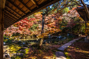 高野川から引水した池泉回遊式の庭園が評判となり、近年訪れる人も多くなり、特に紅葉の時期は、多くの人でにぎわいます。