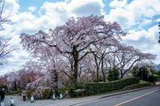 山越道一条の交差点の北東の広大な敷地に桜とモミジが植えられていてきれいでした。
