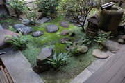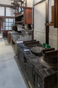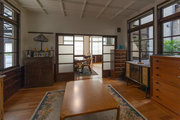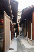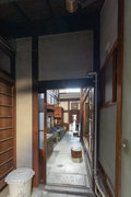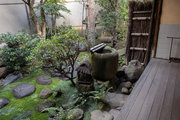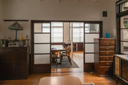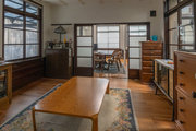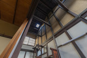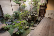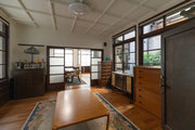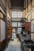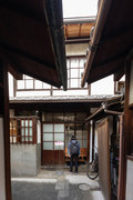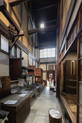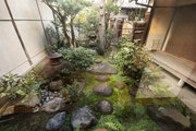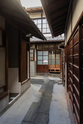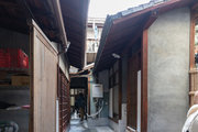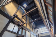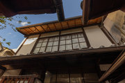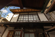 外から一見すると洋風ですが、奥には和風の住居を備えた、表屋造の町家です。大きな窓に水平線を強調したデザインの店舗部分、屋根のない屋外作業スペース、内部にある中廊下など、従来の町家にはない特徴を備えています。洋風化した、モダン町家を体感してください。