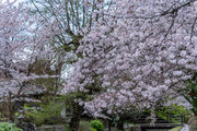 京都は小雨天気だが多くのスポットでソメイヨシノが満開である。哲学の道は浄土寺橋(白河通今出川)から疏水沿いに永観堂に近い若王子橋まで約2.2km続くが、全域にわたってソメイヨシノが満開らしい。今回は桜の密度が高い銀閣寺付近に行った。