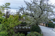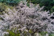 少し北に入った家の前庭に緑色の桜があった。ギョイコウ(御衣黄)かなあ。