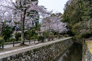 アプローチ、白川通今出川の交差点から銀閣寺下までの疎水沿いにも桜が並ぶ。