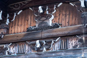 四脚門、切妻造、前後唐破風造、檜皮葺