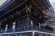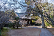 法然上人の御遺骨が納められているため非公開です。御影堂、阿弥陀堂の縁や渡廊下付近に竹で結界が示されており、そこから奥には行けません。冬季は木の葉が落ちるので、かろうじて拝殿の屋根付近が枝越しに見えます。