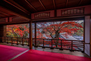 二階に直行して盛りの紅葉の眺めを楽しみました。