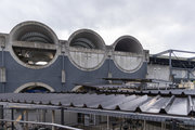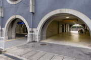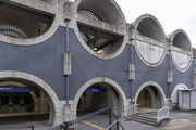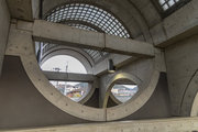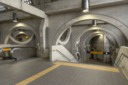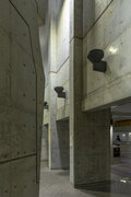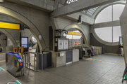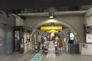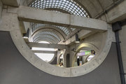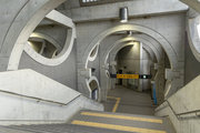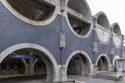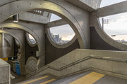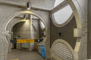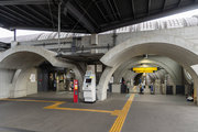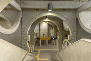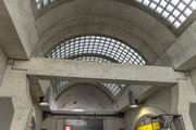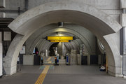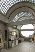 ホームから降りるといきなり目につくのは、RCで造成された半円のヴォールト状の入口です.
