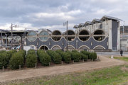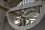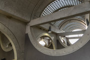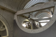 宇治特有の近代的な工業地帯と風光明媚な風景との混在、そして茶畑に着想を得たデザイン。鳳凰をモチーフとした国内最大級のステンドグラスも備える。