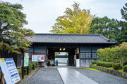 1894(明治27)年、御殿建築と同時につくられたとされる。医薬門形式。門の中心が前方に片寄っているのが特徴。
