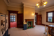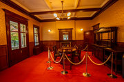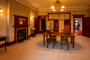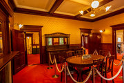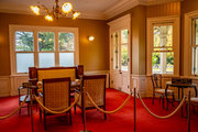 御殿玄関の寄木張りの床は当時の外務省を模したといわれている。木材の濃淡を活かした精密な細工が見ものとされる。(修復中)