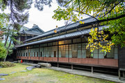 庭園から見た諸戸家住宅広間、玄関及び御殿