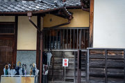 玄関奥の格子戸から手前を公的な部分、奥を私的な部分(住居)として明確に区分されている。