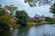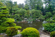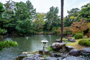 現在は調査を兼ねた修復工事の真最中。 池は琵琶湖を模している。
