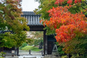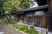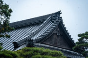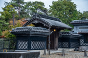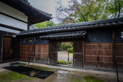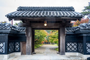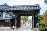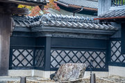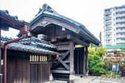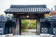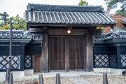 一間一戸薬医門、両側袖塀付、本瓦葺