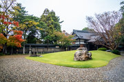 御殿広間は庭園も建築も高低差が大きいが、盛土が関係しているとされる。