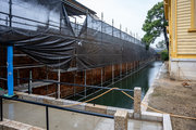 120年を経過した建物の破損が著しく、12年計画の保存修理事業が行われており、平成33年3月完了の予定で工事が継続されている。