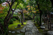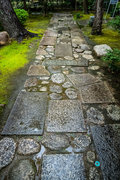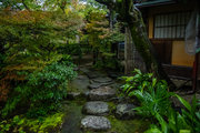 切石と玉石を敷き詰めた延段が奥へと導く。