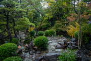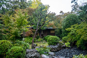 初代清六氏が1884(明治17)年にこの地を取得してから続けられた普請は、二代目清太に引継がれ、主屋に連なる茶室・伴松軒とその露地の造営によって完成と見る。東京から招いた宮内省技師・小平義近と、京都から招いた狩野宗朴宗匠が構築したもの。