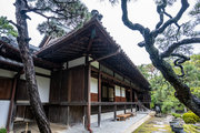 書院は南面して、桁行七間半、梁間四間、二層入母屋造り。 屋根は五寸勾配によって形成し、むくり反り等なく一直線の桟瓦葺きで、入母屋破風も単調な形式を示し、妻格子も板張りで簡素で淡白な形式となっている。