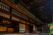 御殿は1890(明治23)年頃に着工。数年かかって完成した。庭をよく眺められるように、床は高く、柱の少ない豪放な造り。