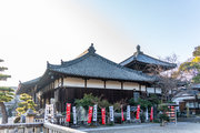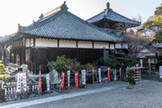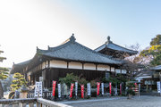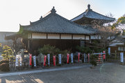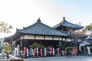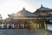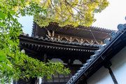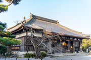 宝形造の内陣とその前に建つ寄棟造の外陣とを繋いだ大規模な複合仏堂で、京の大工棟梁の手になる。