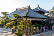 松阪市白粉町512 来迎寺本堂 重文 近世以前/寺院 江戸中期 享保15(1730) "内陣及び外陣よりなる 内陣 正面三間、背面五間、側面四間、一重もこし付、宝形造、取合を含む 外陣 正面七間、梁間四間、一重、寄棟造、向拝三間、背面左右脇壇付 総本瓦葺" 19880511