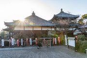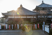 御住職のご厚意で鐘楼門の上に上げていただきました。