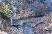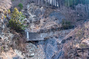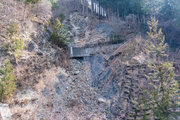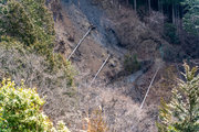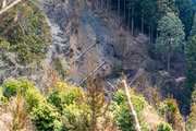 中央構造線は、関東から中部・近畿・四国を経て九州まで、ほぼ東西に連続する我 国第一級の大断層であり、延長は1,000kmにも及ぶ。地質学的には、断層北 側の西南日本内帯と呼ばれるカコウ岩を主体とする地域と南側の西南日本外帯と呼ばれる変成岩地域の境界を成す断層である。活動時期は約1億年前の中生代白亜紀に遡るとされ、我が国の成り立ちを語る上で欠かせない。中央構造線は、地形的にも顕著であり衛星画像などでも明瞭に捉えることが出来る。特に長野県茅野市から静岡県水窪町に至る南北の谷、和歌山県の紀ノ川、徳島県の吉 野川から石鎚山脈の北縁に沿う地域では顕著な直線上の地形を示す。この地形的に顕著な地域は、中央構造線の最近の活動が活発な地域と一致する。この地域での中央構造線は右横ずれ成分が卓越し、千年あたり数mの変位量を示す活断層である。「月出の中央構造線」は、奈良県境に近い三重県飯高町にある。断層露頭は高さ約80m、幅約50mに達する。この断層露頭は、平成7年度からの三重県治山事業による土砂の除去作業により出現したものである。断層面はほぼ東西で北に60度程度傾斜する。断層を挟んで北側は西南日本内帯に属す、白色のカコウ岩類、南側は西南 日本外帯の黒色の変成岩類で、色彩の違いからも断層が簡単に認識できる。 三重県地域での活動度は低いものの、「月出の中央構造線」では、西日本を地質学 的に二分する大断層である中央構造線が明瞭に認められる。観察路や説明板などの整備も行われており、安全に観察できる。天然記念物に指定し永く保存を図るものである。(文化庁)