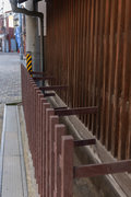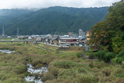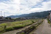 おまけ 名張川と旧町西部、名張駅前の乱歩像、整然とかけられた箸