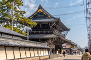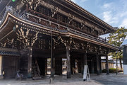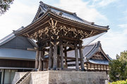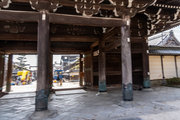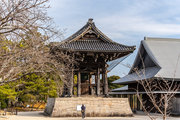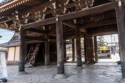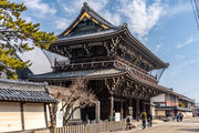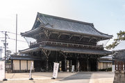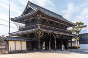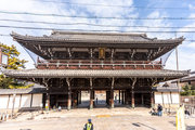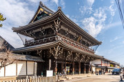 御影堂前の山門、如来堂前の唐門、御影堂と如来堂を結ぶ通天橋をはじめ、鐘楼や茶所が境内南側を構成する。