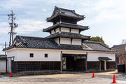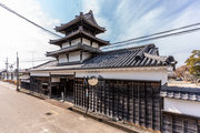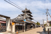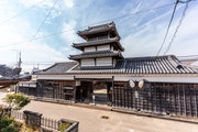 5間三戸二階二重門、入母屋造、本瓦葺、北面三間張出し付