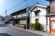 本陣の並びに大きな下駄を軒下にぶら下げた商家があります。向かい側は脇本陣の鷹野家。問屋を兼ねていたそうです。平入り切妻造で軒下に木鼻彫刻。そのお隣は大和屋という旅籠の「真山家」。こちらも問屋も兼ねていて幕末には庄屋さんでした。家屋は1766(明和3)年の建築で、江戸時代中期の宿場建築の貴重な遺構として国の重要文化財に指定されています。ネット上では内部を見せてもらっている写真もありましたが、家の前には家の見取り図もなく「重要文化財 真山家」の看板以外には何の説明もありません。木鼻彫刻はきれいですが、ちょっと残念です。