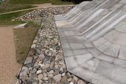 墳丘は対角長18.5m高さ約4mの八角形墳で版築によって築かれています。