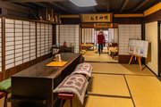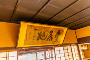 藁葺屋根の素朴な屋敷の前に建つ重厚な冠木門には、倒幕の志士天誅組吉村寅太郎の筆による「賀名生皇居」の扁額が掲げられています。