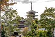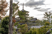 三経院茶屋付近から東院回廊と五重塔を望む