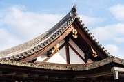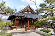 表門の背後の檜皮葺の建物が本堂、その西隣、本瓦葺で東側に檜皮葺の唐破風が付いているのが太子殿です。