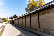 生駒郡斑鳩町法隆寺山内1-1 法隆寺東院大垣 南面 重文 近世以前/寺院 江戸中期 元禄9(1696) 南門東方長さ26.4m、西方長さ29.4m、築地塀、本瓦葺 19430609
