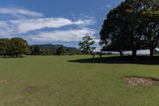 その背後に大洞クスノキ、幹周り 7.07m、樹高 23m