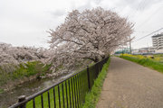 奈良県景観資産 桜並木が眺望できる佐保川・奈良県図書情報館付近