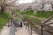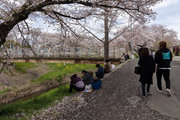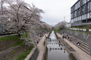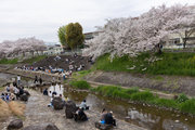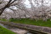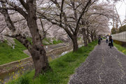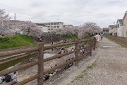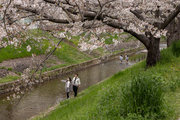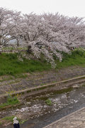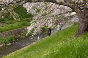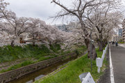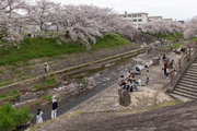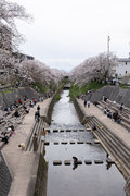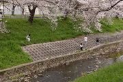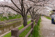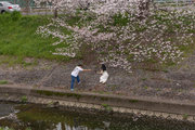 三条通を越えて、佐保川左岸を行く。中国人の新婚さんが桜の花をバックに記念撮影をしていた。
