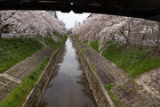 快晴の日、佐保川沿いの、やや散りかけの桜並木を、大佛鐡道記念公園から国道369号線三条通大宮橋までたどる。ときたま、ハッとする桜景色が見える。同名の橋(大宮橋)が比較的近接しているのに気がついた。