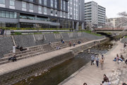 県立図書情報館の前で右岸に渡る。