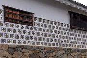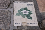 寛永7年(1640年)植村氏が藩主として入部後、山上の高取城では日常生活が不便なため藩主をはじめ家臣の屋敷は街道筋に移されました。そして次第に城下町が形成されていきます。今も古い町屋が残る石畳の道が、当時のメインストリート土佐街道。正面の山が高取城です。この石畳は、阪神大震災の復旧工事で出てきた阪神国道の路面電車の石畳を利用しています。